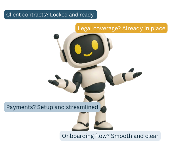 Your essentials are ready when you are. Contracts, onboarding, payments; all set to protect your work and build trust from the first click.